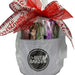 Small: 6 Mint, 6 Rasberry, 6 Milk and 6 Toffee Sea Salt delicious Utah Truffle bars in a classy, white holliday tin wrapped in a clear bag with a hand crafted bow.