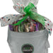 Large: 12 Mint, 12 Raspberry, 12 Milk and 12 Sea Salt delicious Utah Truffle bars in a classy, white holliday tin wrapped in a clear bag with a hand crafted bow.