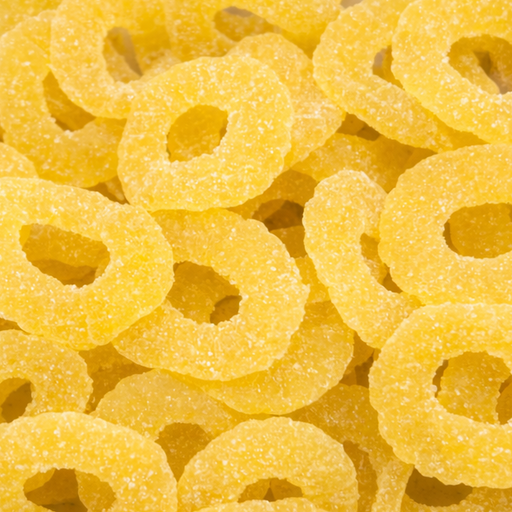 Delicious gummy rings featuring a tangy pineapple flavor with a dusting of sugar. Pineapple gummy rings are perfect for the candy dish at your next...