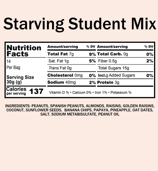 This fruity and nutty trail mix makes a satisfying snack! Our starving student has something new in every handful! Perfect for any of your daily ad...
