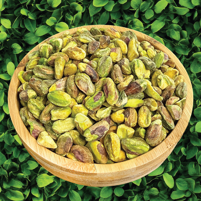 Raw Shelled Pistachios are nature's tiny green gems. Usually vibrant green (though pistachio color may vary) these pistachio are earthy and full of natural pistachio flavor-clearly.