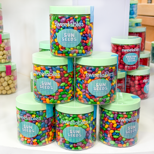 Sweetables jars filled with hundreds of colorful Chocolate Sunflower Seeds! Though we haven't counted. These are a new Sweetables favorite, especi...