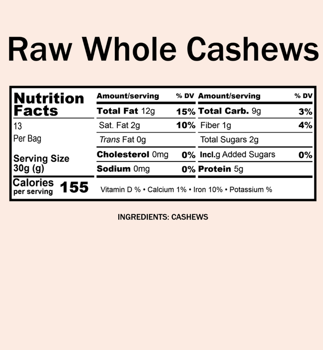 Bulk Cashews, Raw Whole ORGANIC